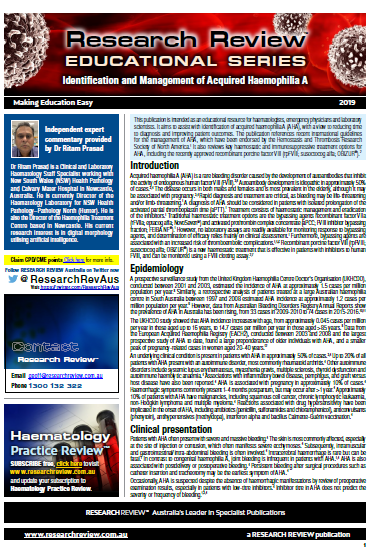 The review includes guiding commentary from Dr Ritam Prasad, a Clinical and Laboratory Haematology Staff Specialist working with New South Wales Health Pathology and Calvary Mater Hospital in Newcastle.