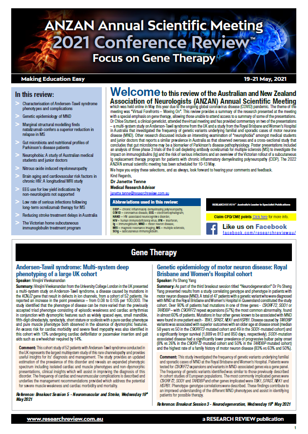 ANZAN 2021 Conference Review focus on Gene Therapy