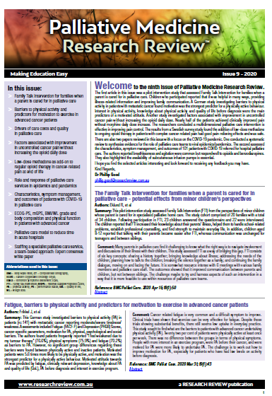 Dr Phillip Good. The Review covers topics such as end-of-life care, palliative chemotherapy, palliative care guidelines, pain management, grief counselling and patient support.