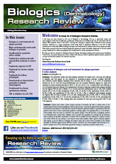 Associate Professor Paul Bird. The Review covers topics such as biologics, biosimilars and the disease areas treated by biological medicines.