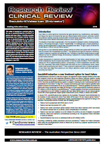 This review is intended as a practical guide for the use of sacubitril/valsartan in patients with heart failure. It includes extensive commentary from Professor Andrew Sindone on use of sacubitril/valsartan in the clinical