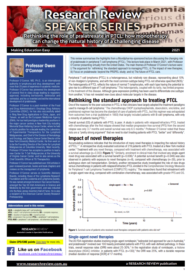 Speaker Series - Rethinking the role of pralatrexate in PTCL, Prof. Owen O’Connor