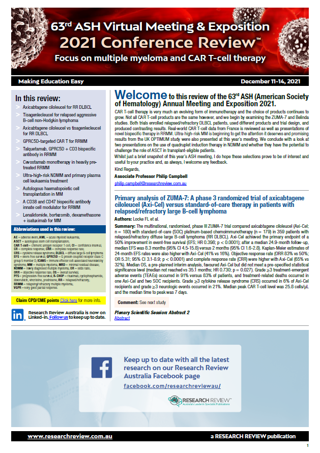Axicabtagene ciloleucel vs tisagenlecleucel for RR DLBCL