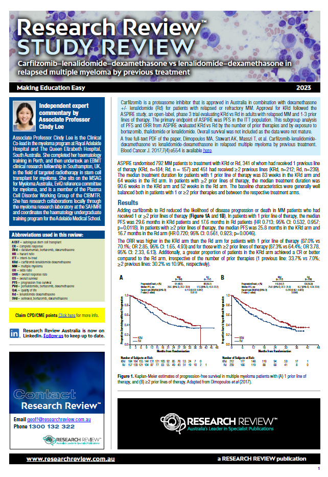 Independent commentary is provided by Associate Professor Cindy Lee, the clinical co-lead in the myeloma program at Royal Adelaide Hospital and The Queen Elizabeth Hospital, South Australia.