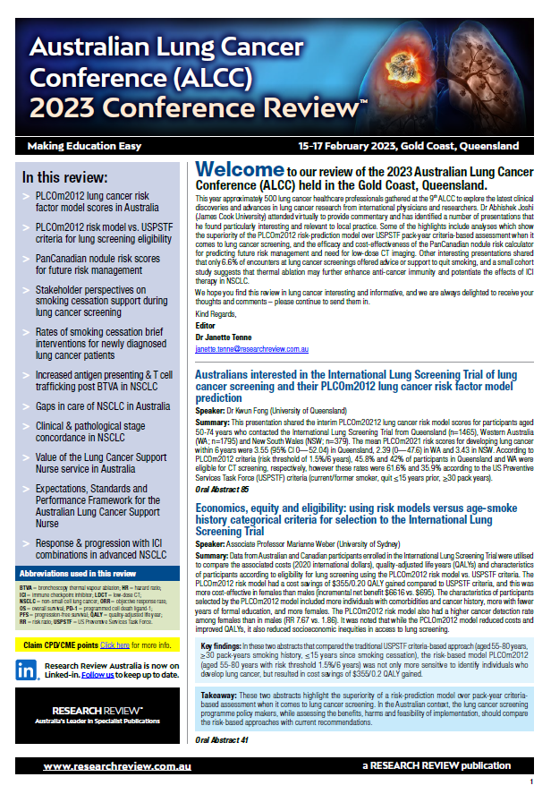 PLCOm2012 lung cancer risk factor model scores in Australia