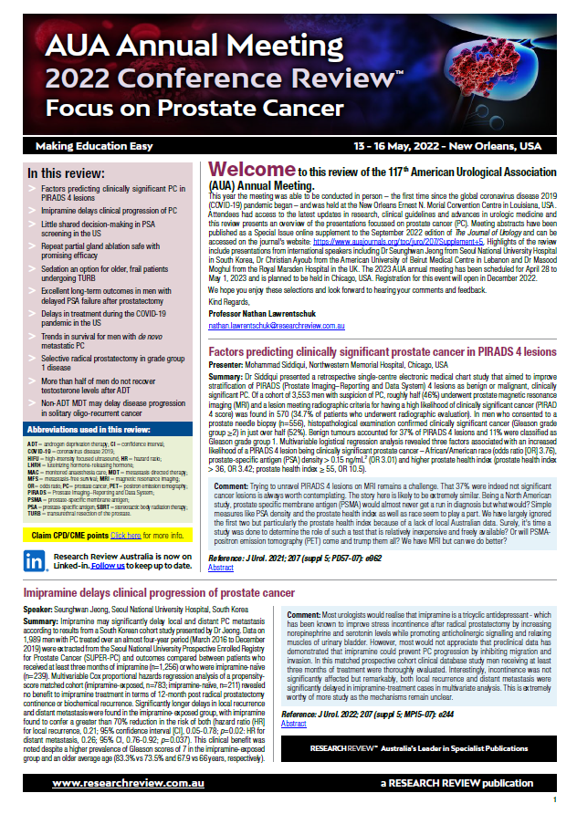 AUA 2022 Conference Review focus on Prostate Cancer