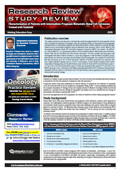 Study Review – Characterisation of patients with metastatic renal cell carcinoma