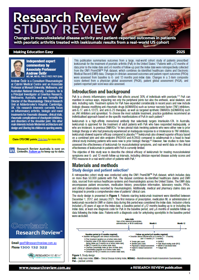 Independent commentary is provided by Associate Professor Andrew Östör, a Consultant Rheumatologist at Cabrini Medical Centre and an Associate Professor at Monash University, Melbourne.