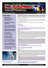 View back issues of Dystonia - Movement Disorders Research Review publications here. Also below are reviews of recent international medical conferences, new medicines, speaker events and other relevant publications.