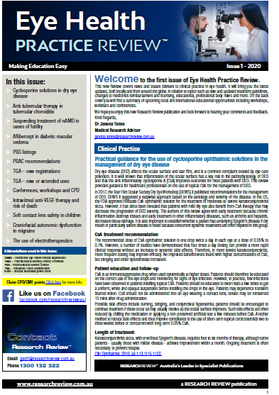 View back issues of Eye Health Research Review publications here. Also below are reviews of recent international medical conferences, new medicines, speaker events and other relevant publications.