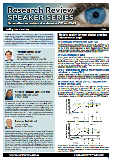This review focusses on a series of presentations on dexamethasone real-world evidence in RVO and DMO.