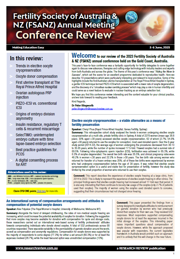 Fertility Society of Australia & NZ (FSANZ) 2023 Conference Review