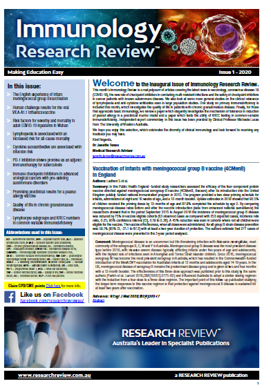 Professor Michaela Lucas. The Review covers topics such as vaccines, immunotherapy, COVID-19, immune checkpoint inhibitors, autoimmune disorders and immunodeficiency.