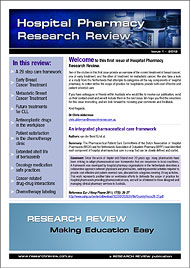 This Review features key medical articles from global pharmacy journals with commentary from Dr Chris Alderman. The Review covers topics such as pharmacy management, pharmacy compounding, hospital pharmacy software, hospital pharmacy guidelines, pharmaceuticals and drug interactions.