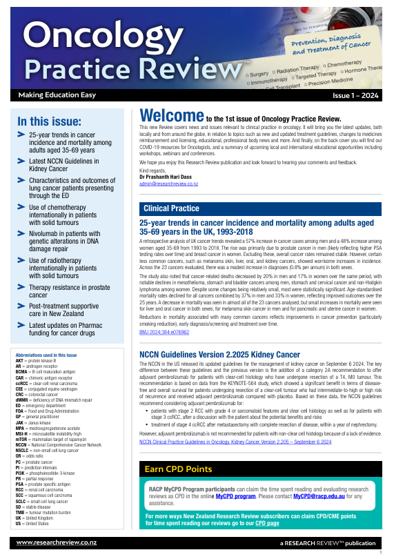 RACP MyCPD Program participants can claim one credit per hour (maximum of 50 credits per year) for reading and evaluating Research Reviews.