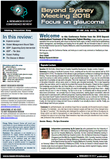 In this review: Keynote Lecture Patient Management Round Table XEN®: Supporting Early Intervention XEN® – The Data Patient Profiling The Disease in Motion